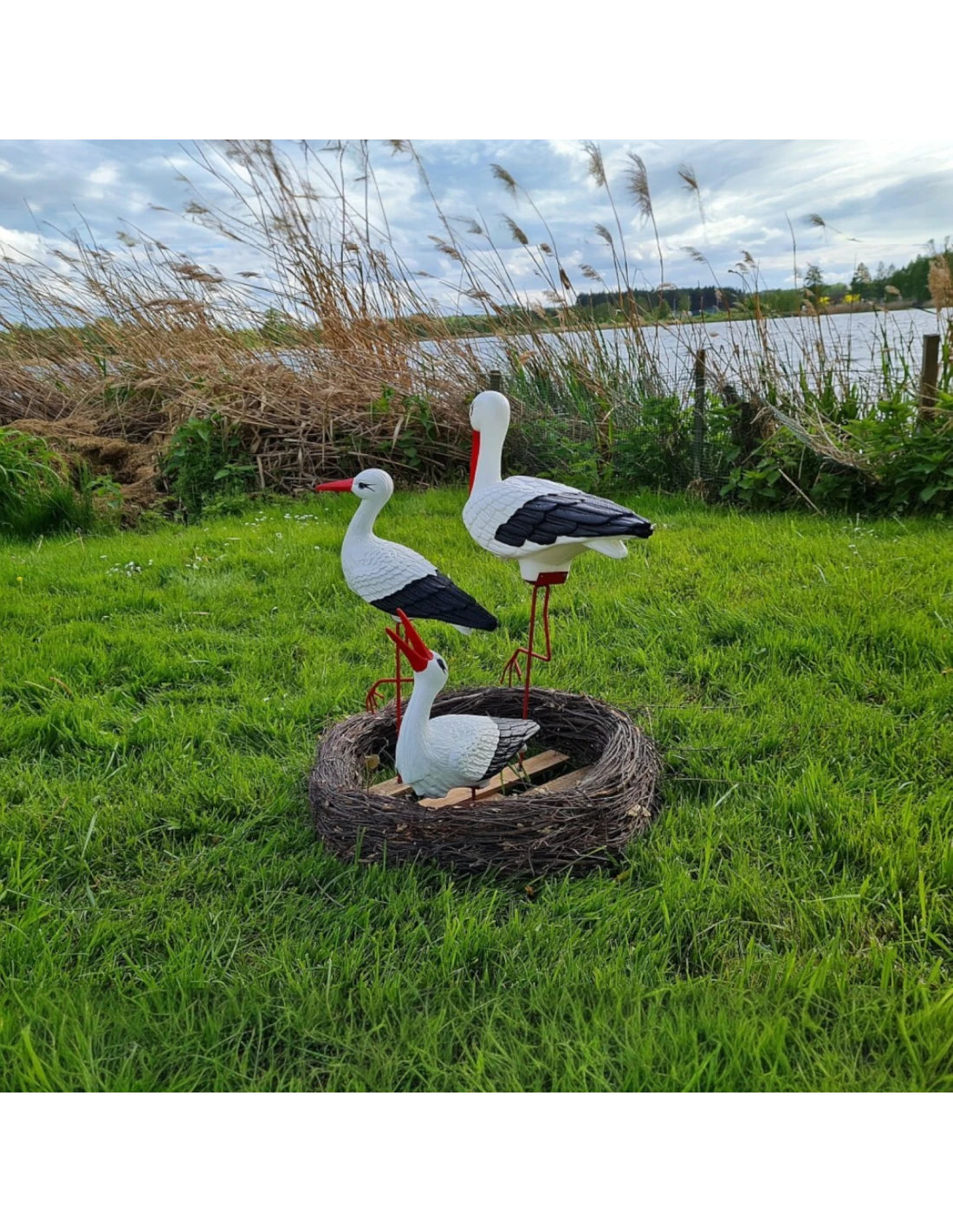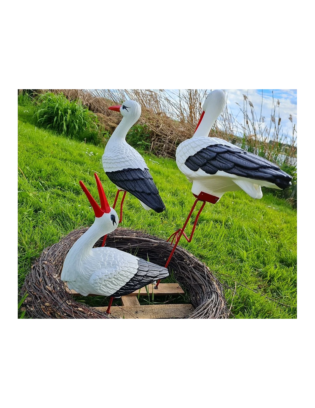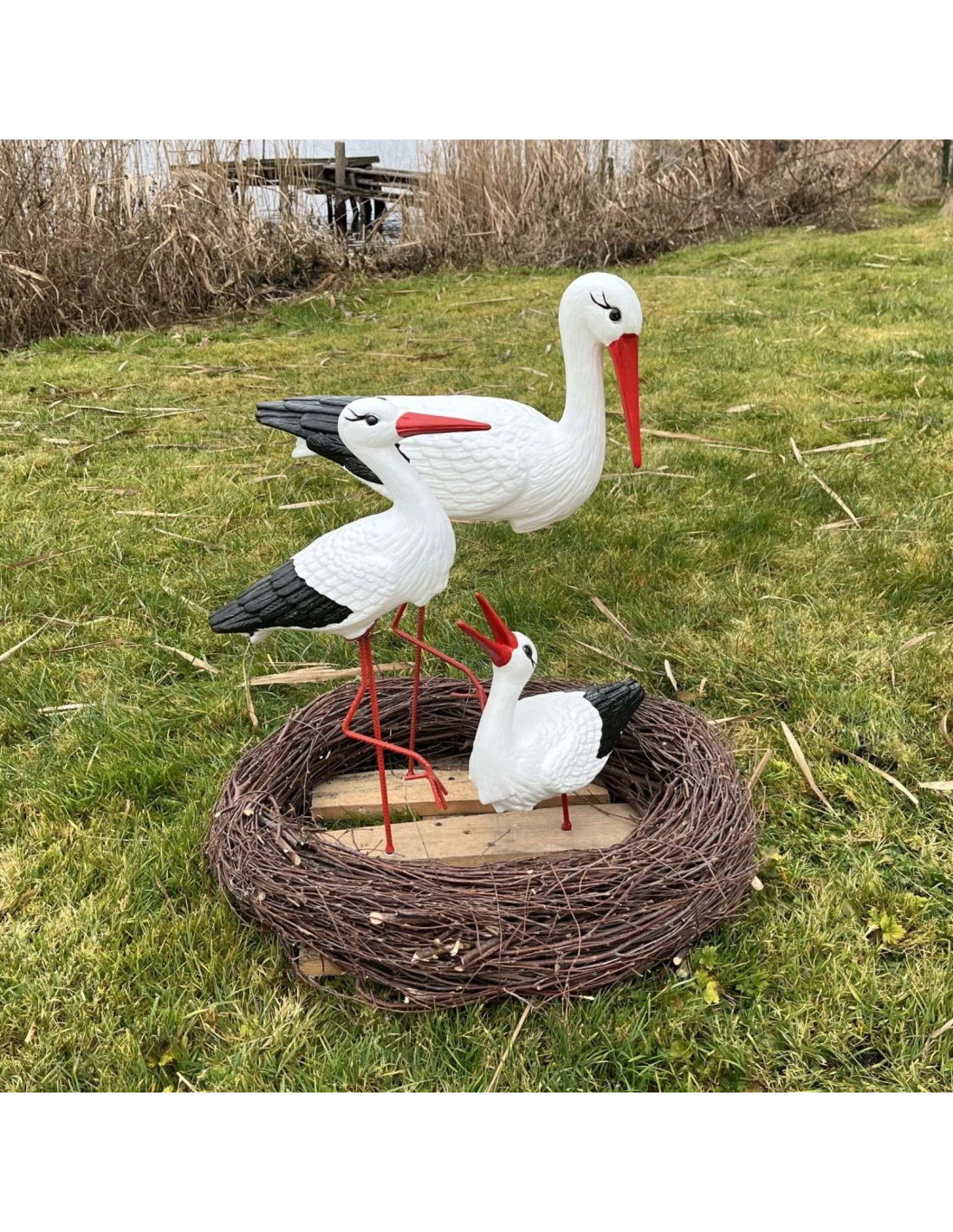 Figure décorative « Nid de Cigognes » – 3 Cigognes, 60 cm