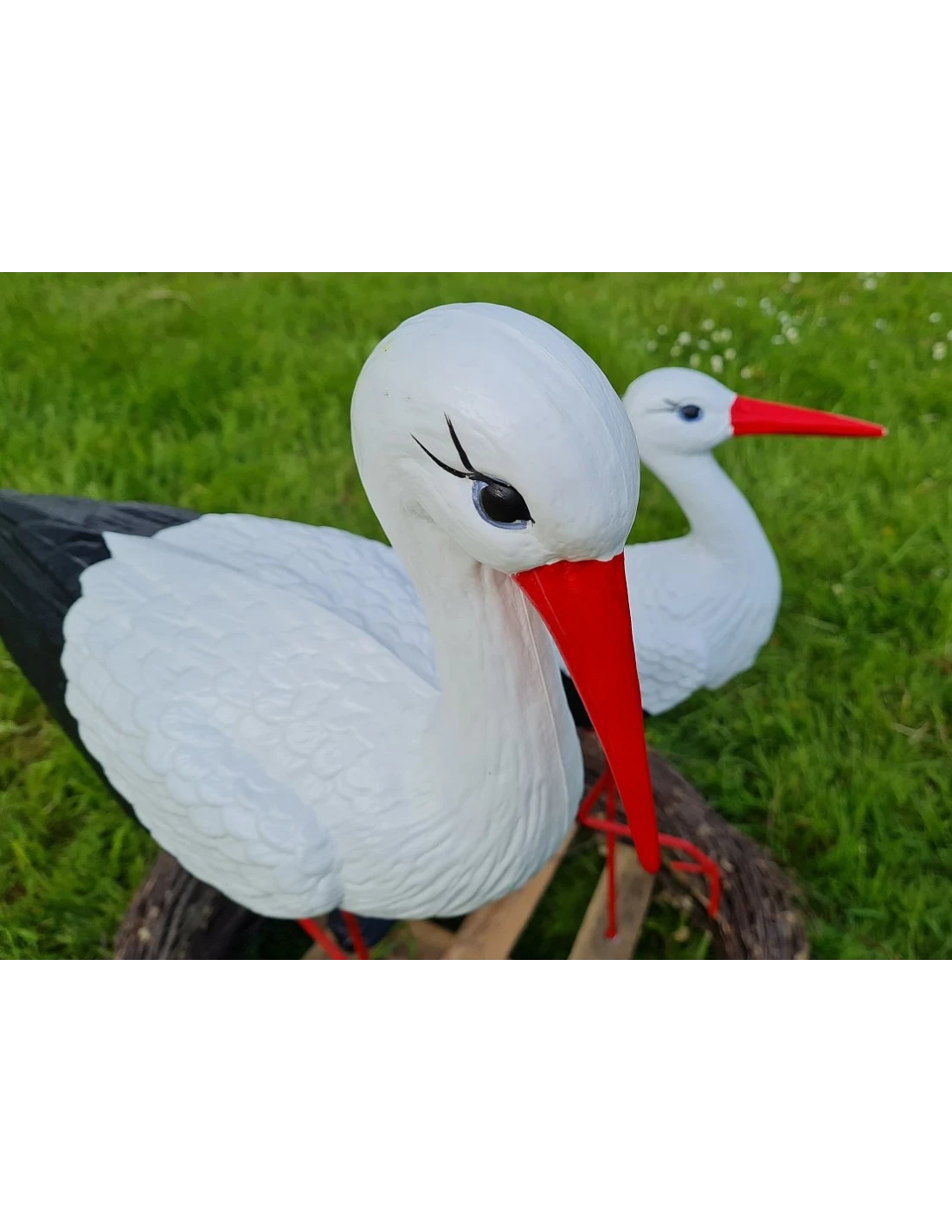 • Ensemble complet – comprend trois figurines de cigognes différentes : moyenne, claquante et petite, créant une composition harmonieuse.