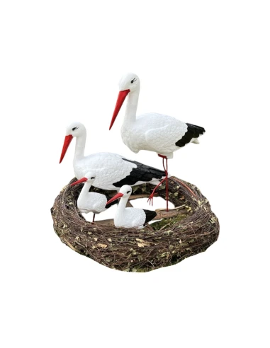 Apportez une atmosphère unique à votre jardin avec la magnifique figure décorative « Nid de Cigognes » comprenant quatre cigognes peintes à la main. Cet ornement extrêmement réaliste ajoutera du charme à votre espace et deviendra un élément décoratif exceptionnel. Idéal pour les jardins, terrasses, balcons, et comme cadeau spécial pour les amateurs de nature.
