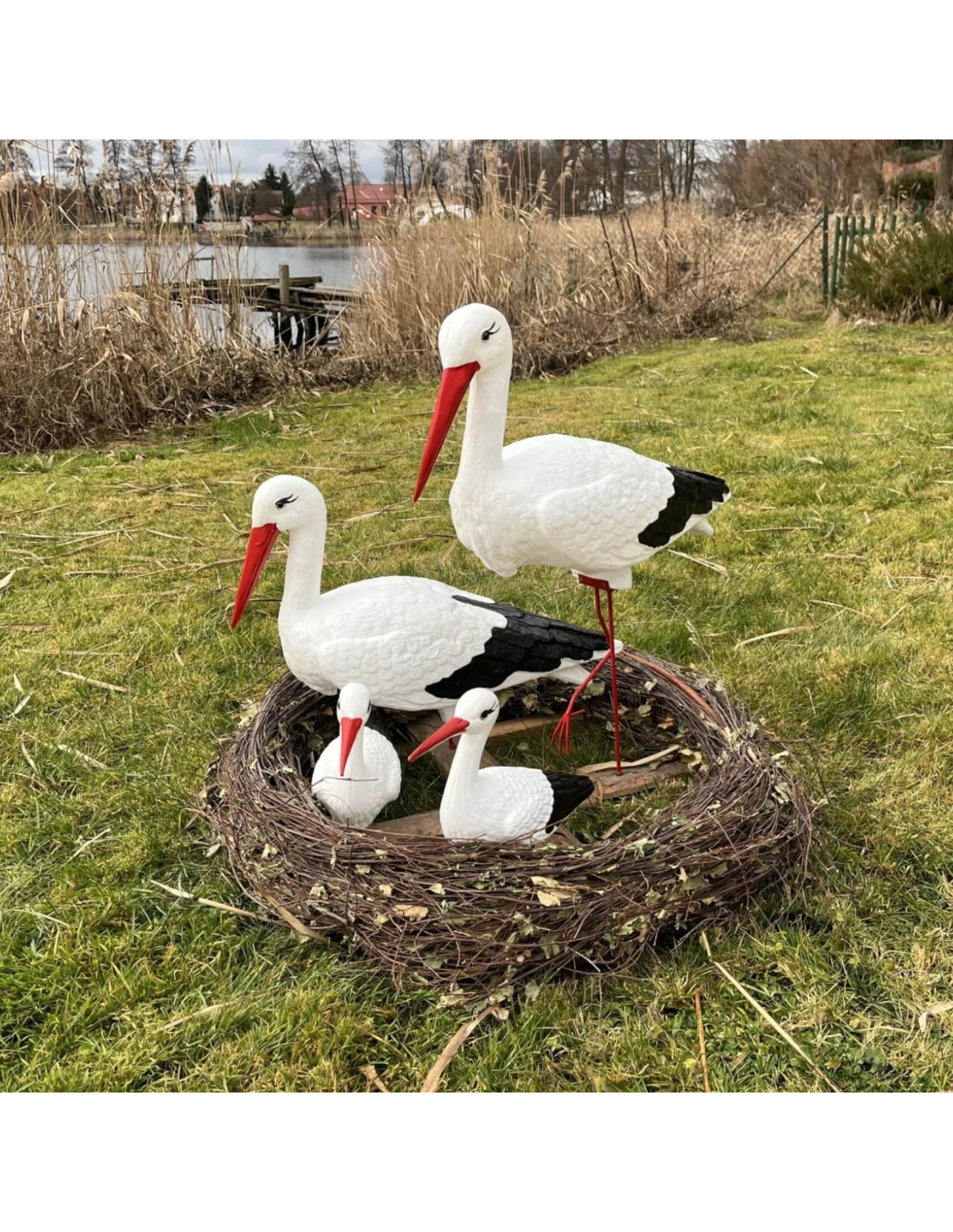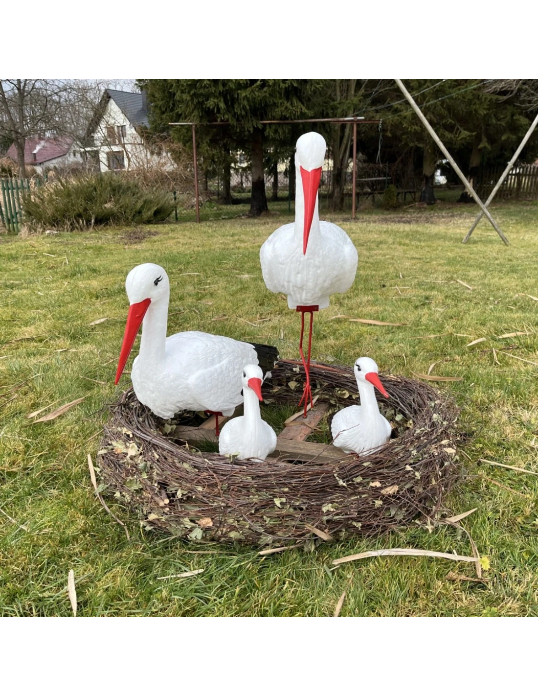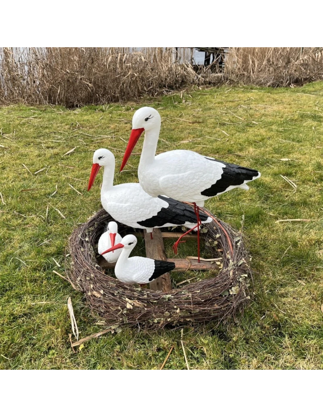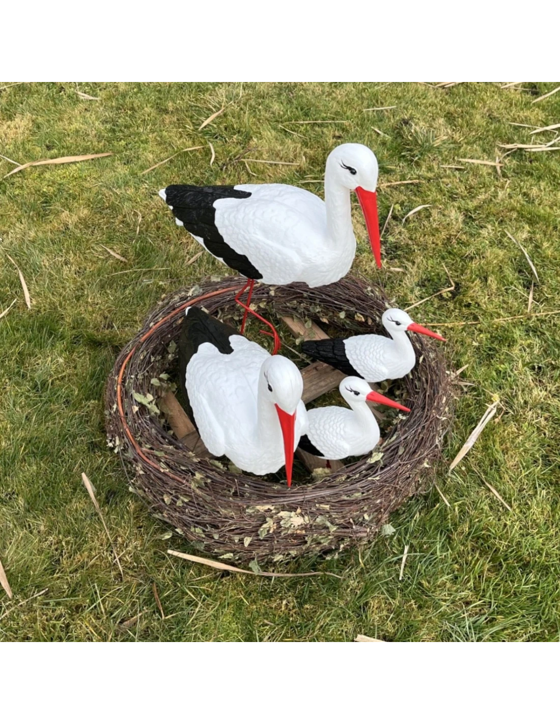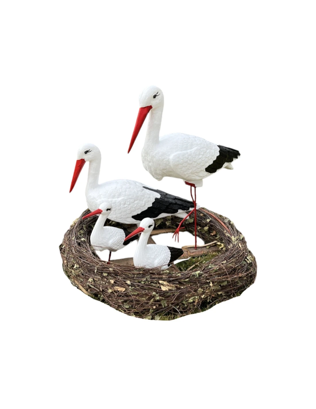 Ensemble complet – comprend quatre cigognes de tailles différentes, formant une composition impressionnante pour tout environnement.